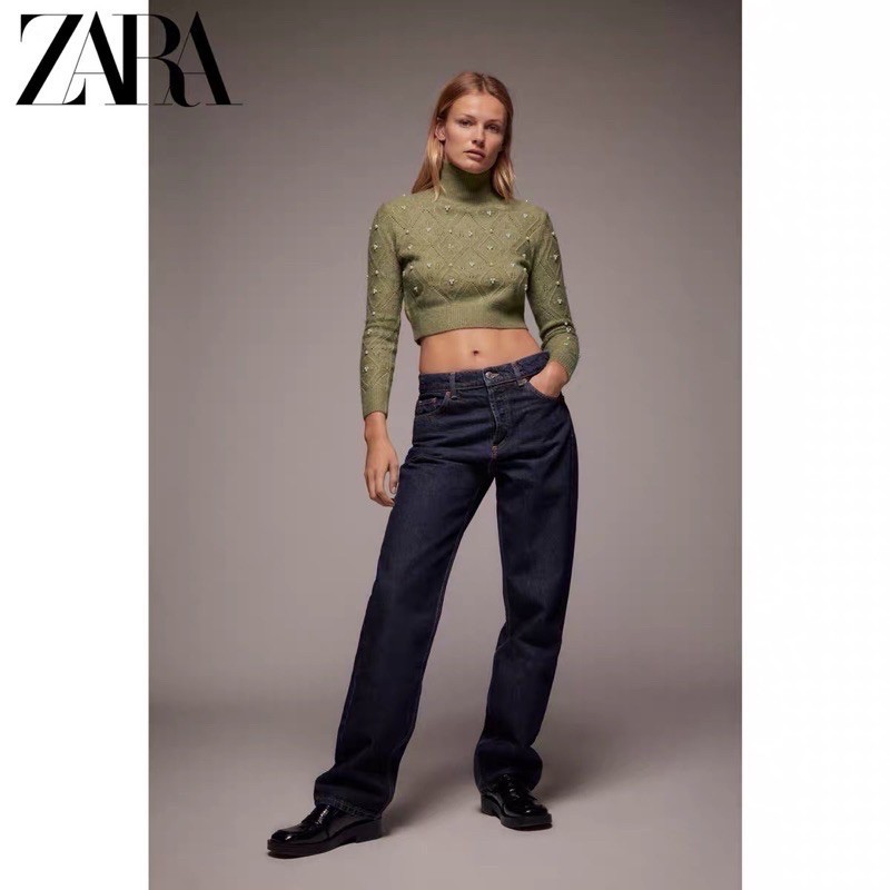 Giới thiệu Sẵn) Áo len croptop đính ngọc Zarrrr dư sịn