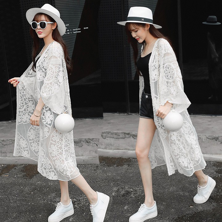 Giới thiệu Có sẵn Áo lưới kimono áo choàng nữ phong cách
