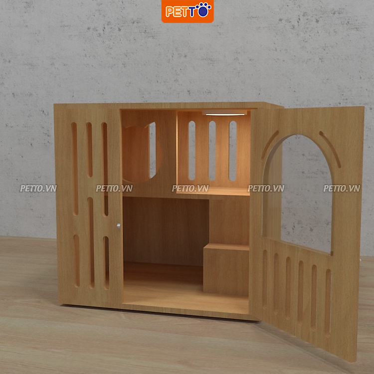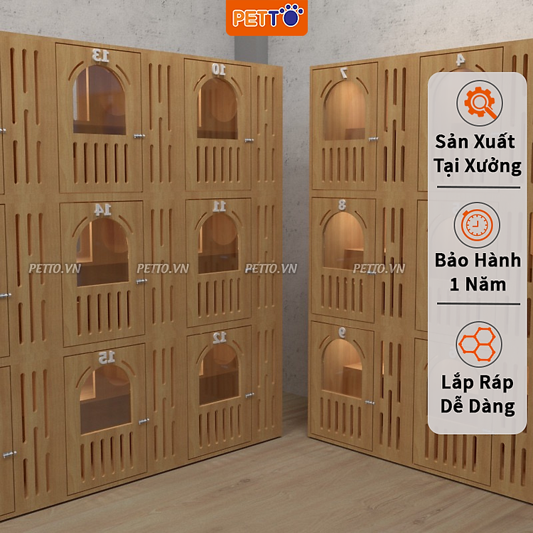 Khách sạn cho mèo PETTO hotel cho mèo bằng GỖ kết hợp ĐÈN LED mỗi tủ hiện đại, sản xuẩt TẬN XƯỞNG bảo hành 1 năm HT006