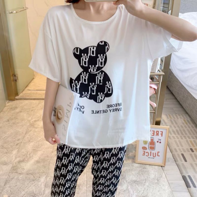 Giới thiệu [ SẴN]Đồ bộ thun gấu quần dài, đồ mặc ở nhà Quảng Châu, họa tiết hoạt hình dễ thương