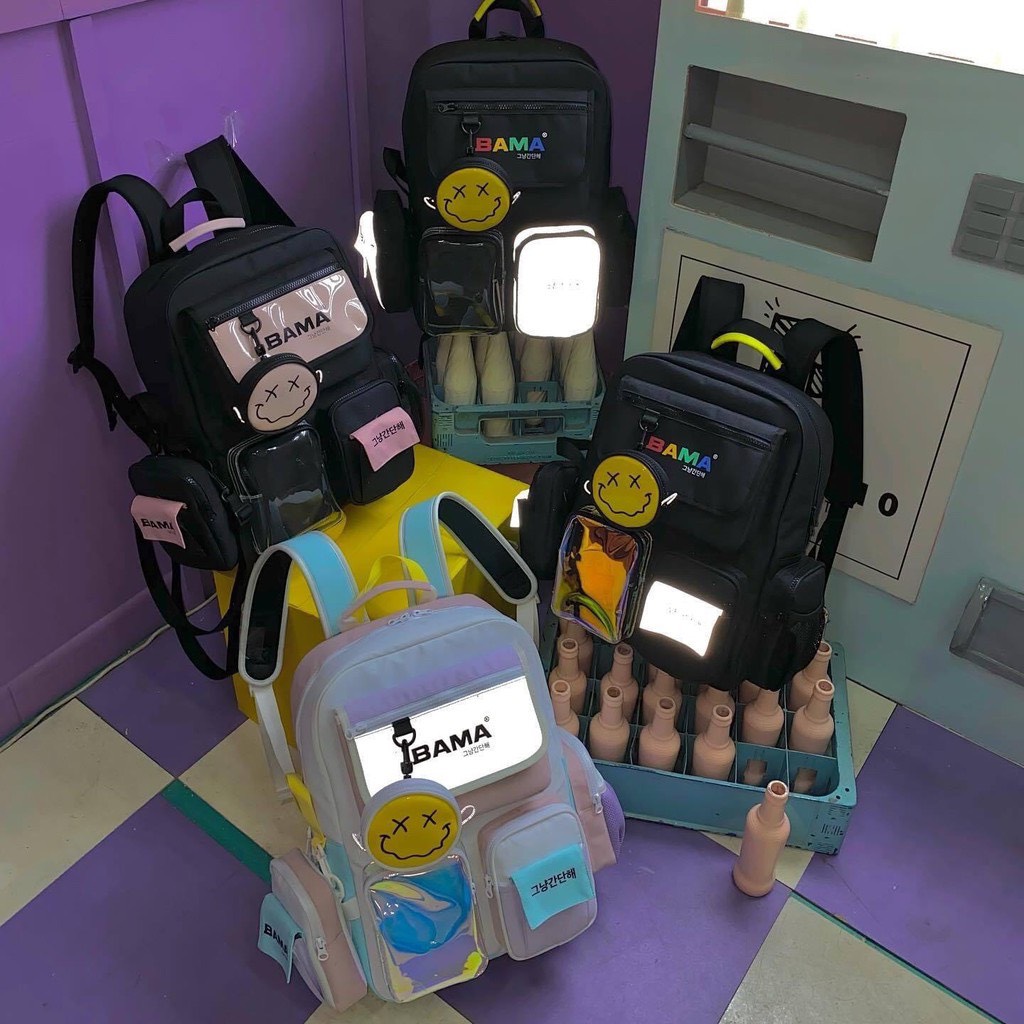 Bộ Sản Phẩm Balo Đi Học Local Brand Bama, Túi Tròn Mặt Cười, Túi Chéo Chống Nước (Full Tag Và Giấy Thơm)