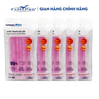 [TÚI-10 CÁI-MÀU HỒNG] COMBO 5 TÚI Khẩu trang y tế cao cấp kháng khuẩn 4 lớp Famapro max