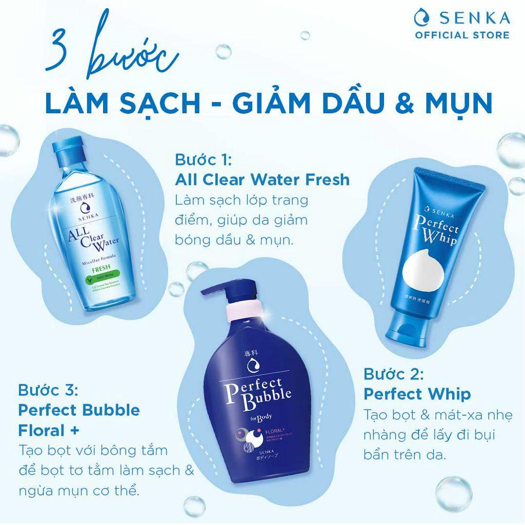 Bộ sản phẩm Senka làm sạch ẩm mịn toàn thân và da mặt (Tẩy Trang Fresh 230ml + Whip 120g + Sữa Tắm Senka tươi mát 500ml)