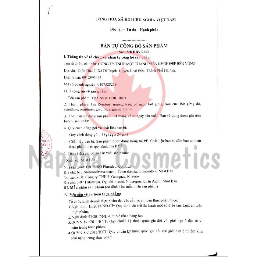 Sản phẩm không phải là thuốc, không có tác dụng thay thế thuốc chữa bệnh. (Bảo quản sản phẩm nơi khô ráo, thoáng mát, tránh ánh nắng trực tiếp)
