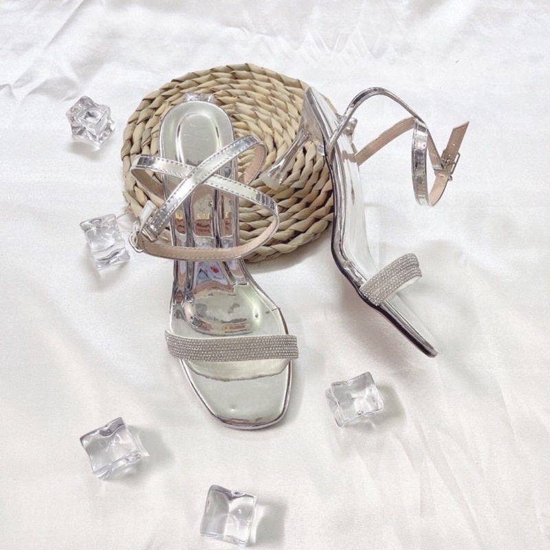 Sandal 2 quai đá liti gót nhọn mica 6p (loại 1)