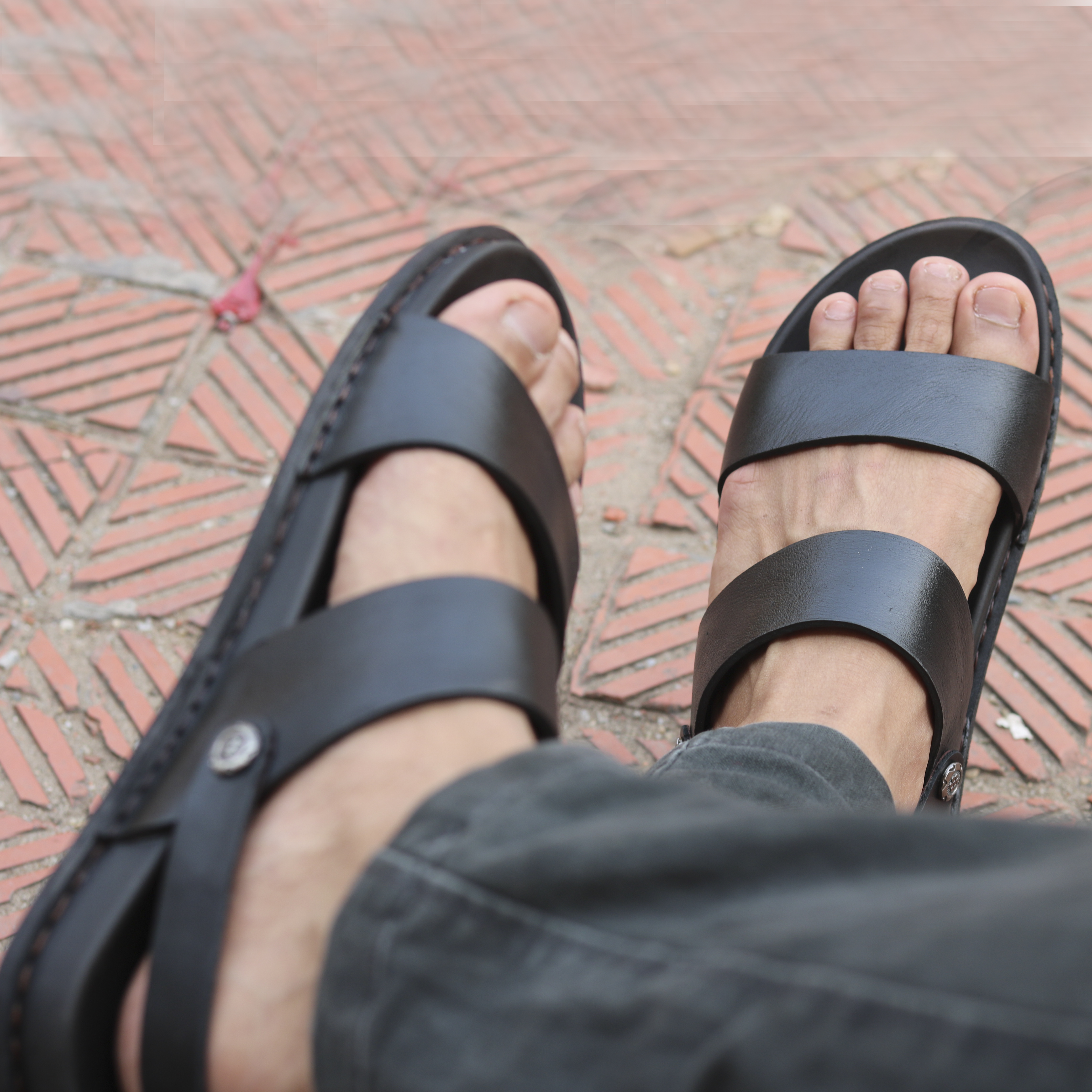Sandal Nam Da Bò DE02 với được khâu đế chắc chắn, quai sau thiết kế thông minh 2 trong 1 có thể gấp lên tiện lợị