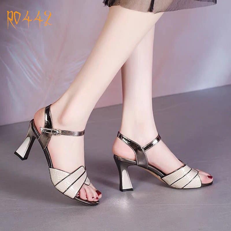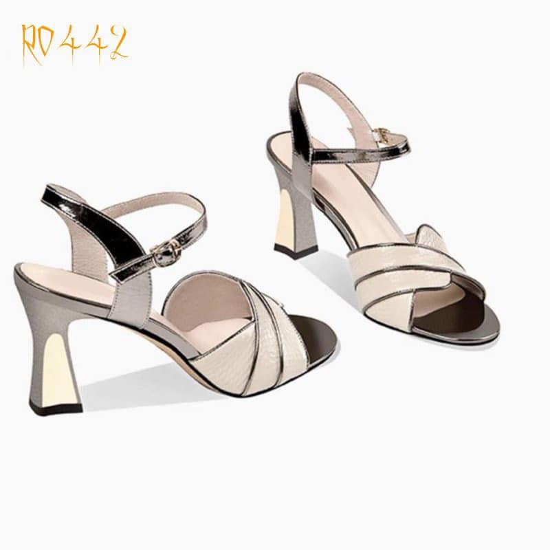 MÔ TẢ SẢN PHẨM: Sandal nữ hở mũi, da lì ROSATA RO442 cao 7p - Kem - HÀNG VIỆT NAM - BKSTORE