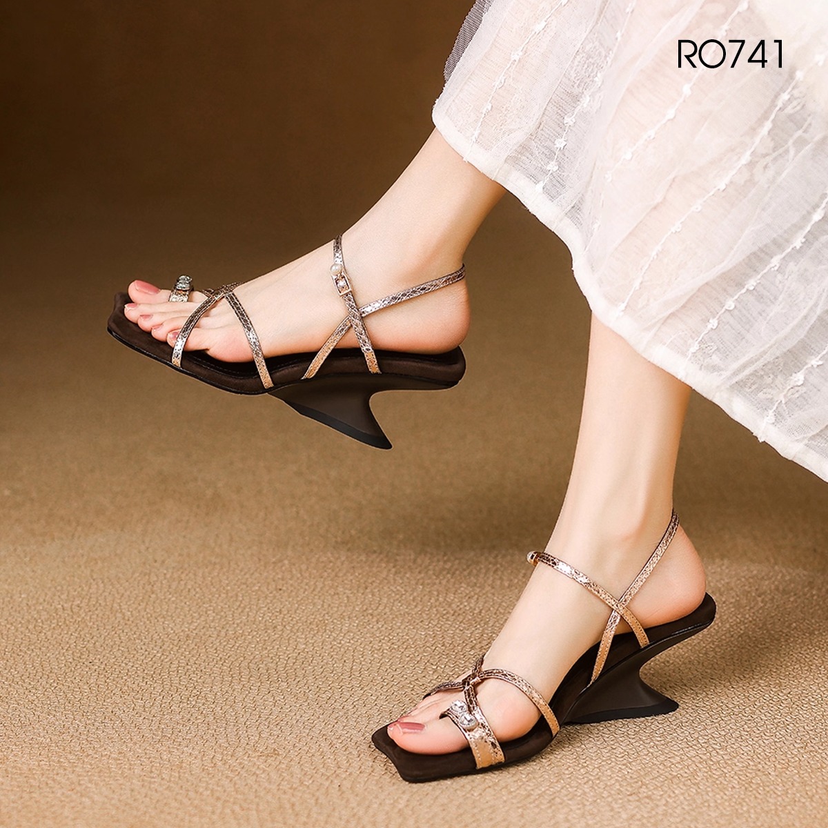 MÔ TẢ SẢN PHẨM: Sandal nữ quai mảnh, đế cách điệu ROSATA RO741 - 5p - Đen, Nâu - BKSTORE