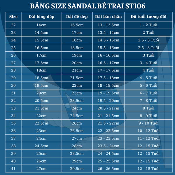 Giày sandal bé trai KENTO ST106 là mẫu dép quai hậu bé trai đi học thuộc dòng cao cấp, thiết kế dành cho bé trai từ 1 đến 15 tuổi (size 22–41). Sản phẩm phù hợp cho nhiều mục đích sử dụng: đi học, đi ...