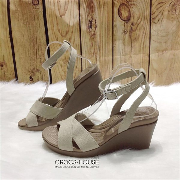 Giới thiệu Sandal xuồng crocs leigh chính hãng 7 phân đế nhựa quai vải êm chân, giày cross nữ đế xuồng quai chéo cao - cross house