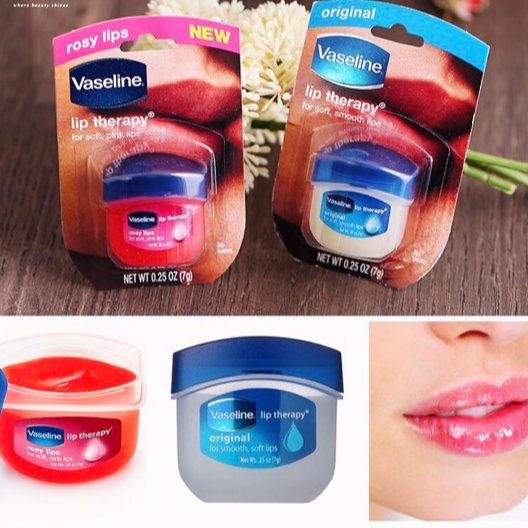 Sáp dưỡng môi Vaseline Rosy Lips Therapy 7g có xuất xứ từ Mỹ ngay lập tức làm mềm môi do được làm từ mỡ khoáng tinh khiết 100% (100% pure petroleum jelly) tức là loại mỡ khoáng đã được thanh lọc nên rất an toàn cho mọi loại da, thậm chí da môi bạn nào bong tróc nứt nẻ kinh niên thì chỉ có vaseline mới có khả năng trị được nó thôi nhé. – Son dưỡng môi Vaseline mang lại làn môi mềm mọng ngay lập tức.