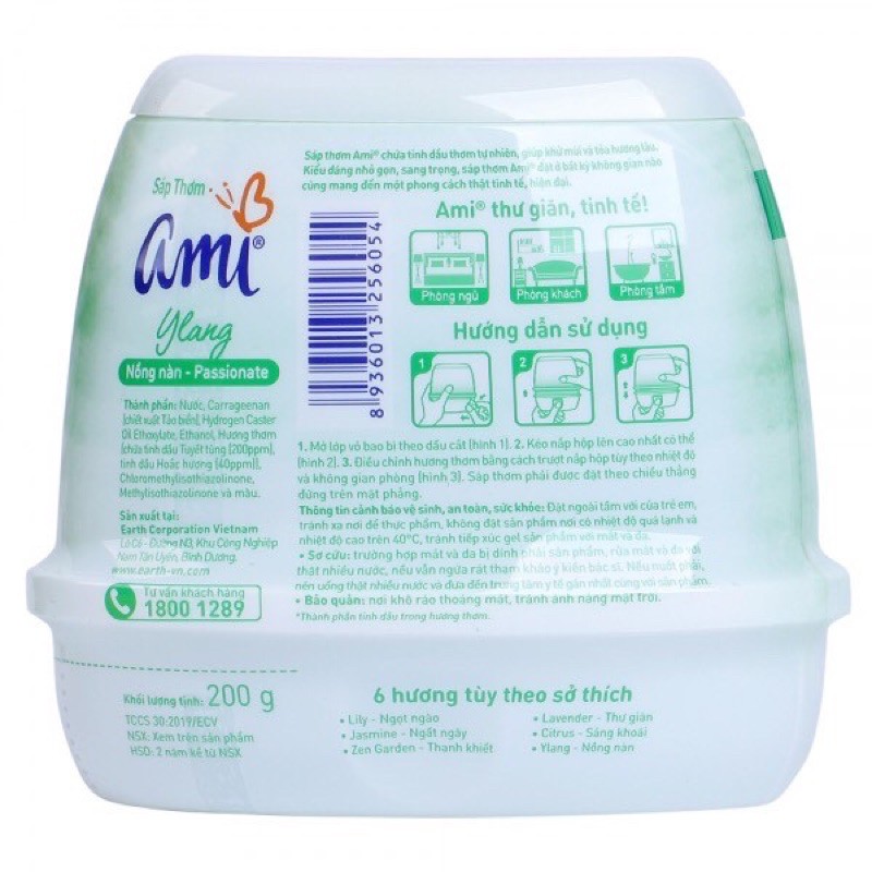 - Sáp thơm Ami chứa tinh dầu thơm tự nhiên, giúp khử mùi và lưu hương lâu. Kiểu dáng nhỏ gọn, sang trọng, sáp thơm Ami đặt ở bất kỳ không gian nào cũng mang đến một phong cách thật chuyên nghiệp, hiện đại