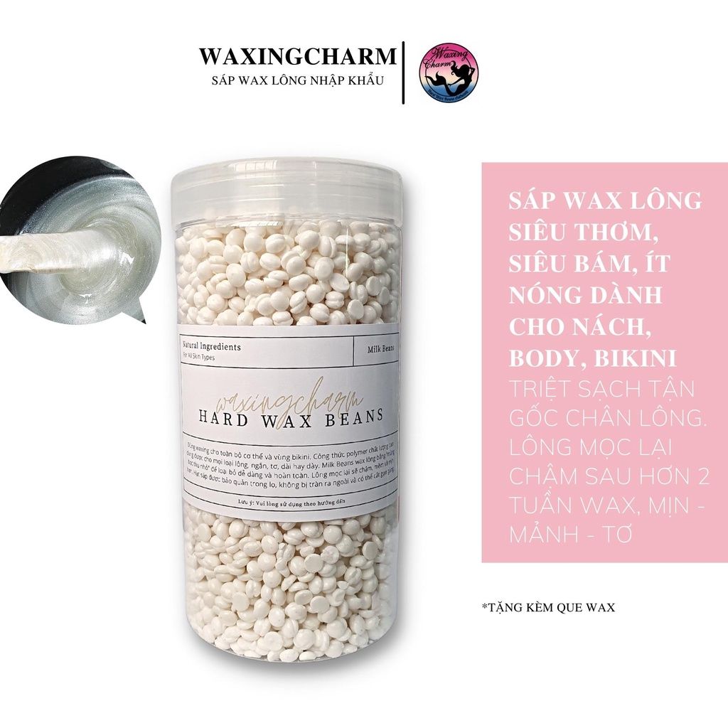 Giới thiệu Sáp Wax Lông Nóng Pearl White Hard Wax Beans WaxingCharm Dành Cho Mặt, Râu, Nách, Body, Bikini