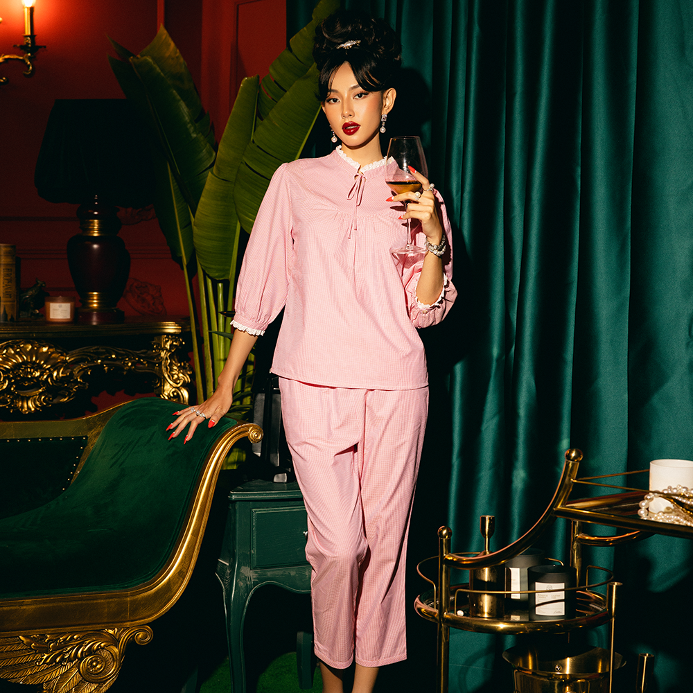 - Bộ kate lửng, áo tay phồng, đô áo dún nhẹ và có may ren trang trí