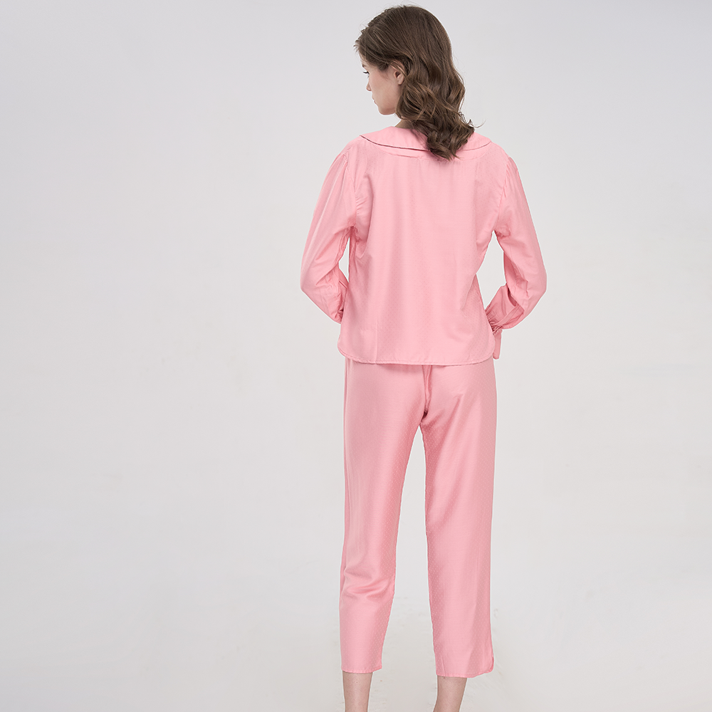 - Bộ satin dài tay, phom dáng suôn thoải mái