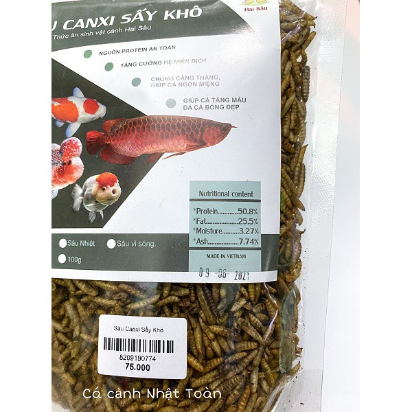 Giá trị dinh dưỡng mà sâu canxi mang lại Côn trùng này rất giàu chất dinh dưỡng, có chứa khoảng 5% canxi và 42% protein theo trọng lượng. Sâu canxi, loại mồi sống rất thích hợp cá cảnh, giúp bổ sung dinh dưỡng, tăng sức đề kháng, kích thích hệ tiêu hóa. Bổ sung canxi và phospho cho Cá. Ngoài ra sâu canxi còn rất phù hợp với nhiều loại thú cưng khác như chim cảnh, bò sát, kỳ tôm,… Trọng lượng tịnh: 100g Bảo quản nơi thoáng mát 🏠CÁ CẢNH NHẬT TOÀN: 32 Phan Bội Châu, P1, Thị Xã Gò Công, Tiền Giang (đối diện cầm đồ Kim Lan, gần tiệm vàng Tri Ân) ☎️0️⃣9️⃣7️⃣7️⃣0️⃣2️⃣2️⃣2️⃣8️⃣1️⃣