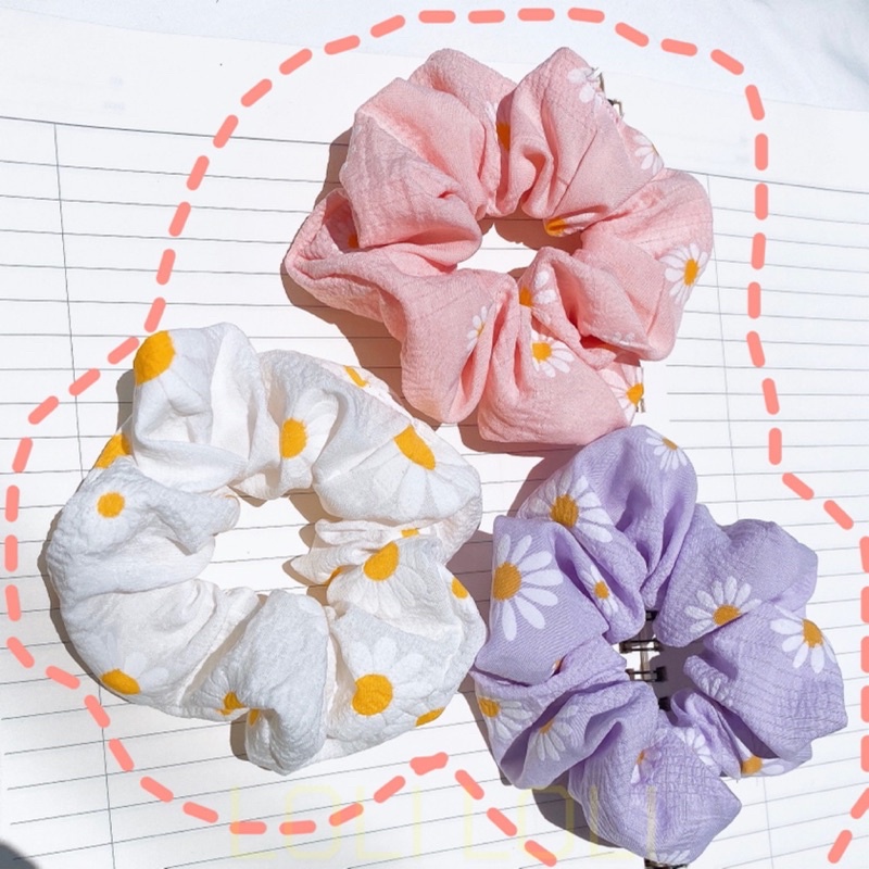 Giới thiệu Scrunchies cột tóc hoa cúc họa tiết in chìm dễ thương