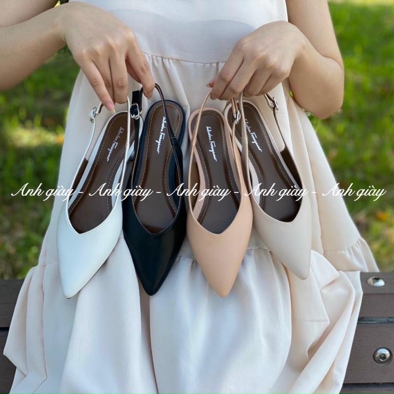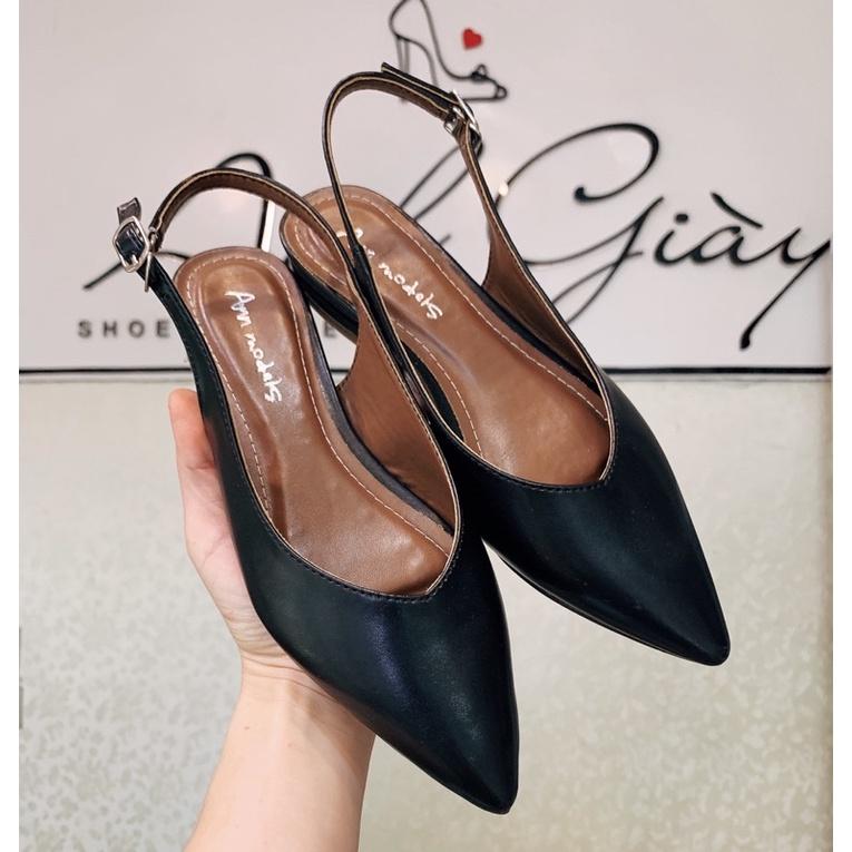 SD23 - Giày bít mũi hở gót singblack gót 2pchất da siêu mềm nhẹ êm 3 màu đen , trắng , kem sữa