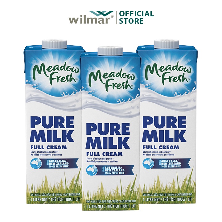 SỮA TƯƠI TIỆT TRÙNG NGUYÊN KEM MEADOW FRESH 1L • Làm từ 100% sữa tươi nguyên chất • Không thêm bất kỳ thành phần nào khác • Hàm lượng chất béo: 3.3% • Thông tin dinh dưỡng trong 100ml: Energy: 260 kJ Protein: 3.5g Fat, total: 3.3g Carbohydrate: 4.6g Sodium: 45mg Calcium: 120 mg • Quy cách đóng gói: 12 hộp x 1L • Thời hạn sử dụng: 9 tháng kể từ ngày sản xuất in trên bao bì • Có chứng nhận Halal • Hướng dẫn sử dụng: uống trực tiếp • Ứng dụng kèm thêm: pha chế cà phê, thức uống/ chế biến món ăn/ làm bánh, tráng miệng,… • Bảo quản: bảo quản nơi khô ráo, thoáng mát; bảo quản lạnh ở nhiệt độ 2-4 độ C sau khi mở bao bì và sử dụng hết trong vòng 7 ngày • Sản phẩm phù hợp cho trẻ từ 1 tuổi trở lên • Xuất xứ thương hiệu: Úc & New Zealand • Sản xuất và nhập khẩu từ Úc Trọng lượng: 1kg Hạn sử dụng: 09 tháng từ NSX Ngày sản xuất: Xem trên bao bì. Sản phẩm của tập đoàn Wilmar International