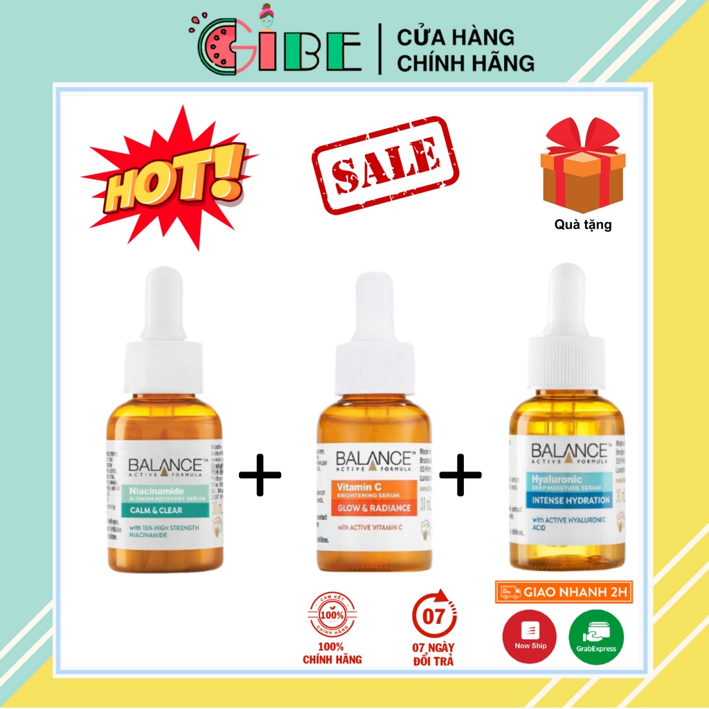 [Combo] Serum Balance Active Formula Hyaluronic Deep Moisturizing + Vitamin C 30ml - GIBE STORE THÔNG TIN CHUNG: Xuất xứ: Anh quốc Loại da: Dùng được cho mọi loại da đặc biệt da thâm sau mụn. Dạng sản phẩm: tinh chất lỏng/ serum Dung tích: 30ml Hạn sử dụng: 2023