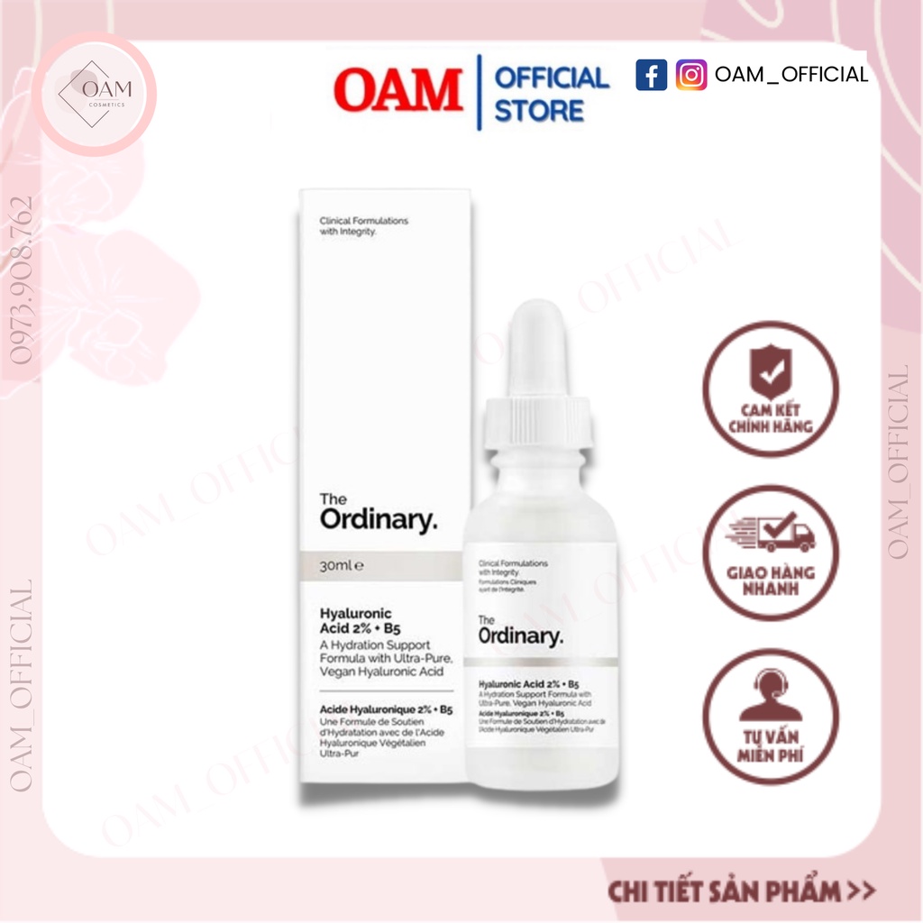 HA (Hyaluronic Acid) có thể giữ khối lượng nước gấp 1000 cân nặng của nó, Vitamin B5 có khả năng phục hồi da. ✅ Giúp da căng mọng, trong trẻo ✅ B5 phục hồi giảm đỏ sau khi lấy mụn, đẩy nhanh quá trình lành vết thương, làm dịu da, tạo ra một lớp màng ngăn cách bảo vệ da khỏi vi khuẩn giúp giảm thiểu tổn thương da do mụn ✅ Cân bằng và giảm lượng dầu nhờn trên da 🥂 Bảng thành phần: Purified water, sodium hyaluronate (1.99%), pentylene glycol, propanediol, sodium hyaluronate cross polymer, panthenol (B5, 0.99%), anfeltiopsis conquina extract, glycerin, trisodium ethylene dia Mindi succinate, citric acid, isosetes-20, ethoxydiglycol, ethylhexylglycerin, hexylene glycol, hexylene glycol, 1,2-hexanediol, phenoxyethanol, ka Frill glycol ❄️ Độ PH: 6.5 - 7.5 ❎ Không cồn ❎ Không silicone 📝 Sử dụng 2-3 giọt, vỗ nhẹ lên da. Dùng sau bước làm sạch. Dùng đều đặn buổi sáng, tối để tăng hiệu quả. ----- 💝 Lưu ý nho nhỏ: 1️⃣ BAO BÌ ✅ Lọ serum KHÔNG có tem seal niêm phong ✅ The Ordinary thay đổi thiết kế bao bì tem nhãn thường xuyên, vài lần/ năm. ✅ Tem nhãn có thể in tiếng Anh-Pháp, Anh-Hàn. ✅ Đôi khi có dán thêm sticker đen đen xám xám lên hộp vì hãng thay đổi nhanh thông tin sản phẩm ✅ Hộp và chai lọ có đợt màu trắng tinh, cũng có đợt hơi ngà ngà. ✅ Nắp lọ serum sẽ có kiểu vênh lệch đặc trưng dù ít hay nhiều. Do The Ord tập trung vào phát triển thành phần, trong khi giá thì rẻ nên không chú trọng bao bì đâu ạ