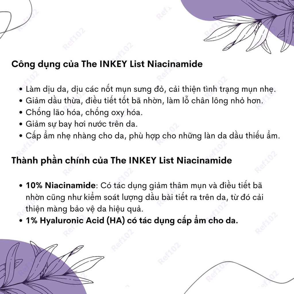 Serum giảm mụn kiềm dầu mờ thâm The Inkey List Niacinamide Ref102