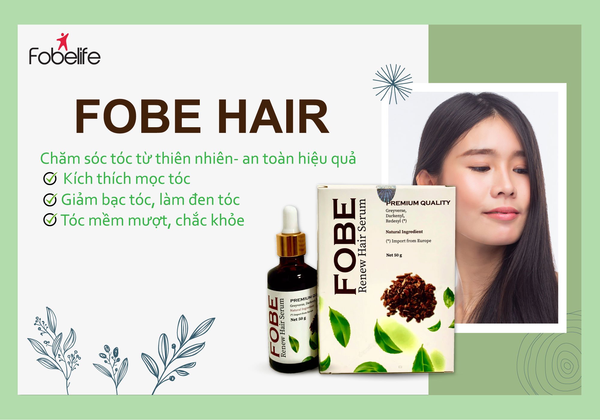 Serum Fobe Hair được nghiên cứu với công dụng giúp tăng hắc sắc tố tóc, kích thích sinh tế bào gốc, giảm mật độ tóc bạc. Giúp giảm rụng tóc, tăng độ dày của tóc, tăng cường sắc tố đen trên tóc, ngăn ngừa lão hoá tóc.
