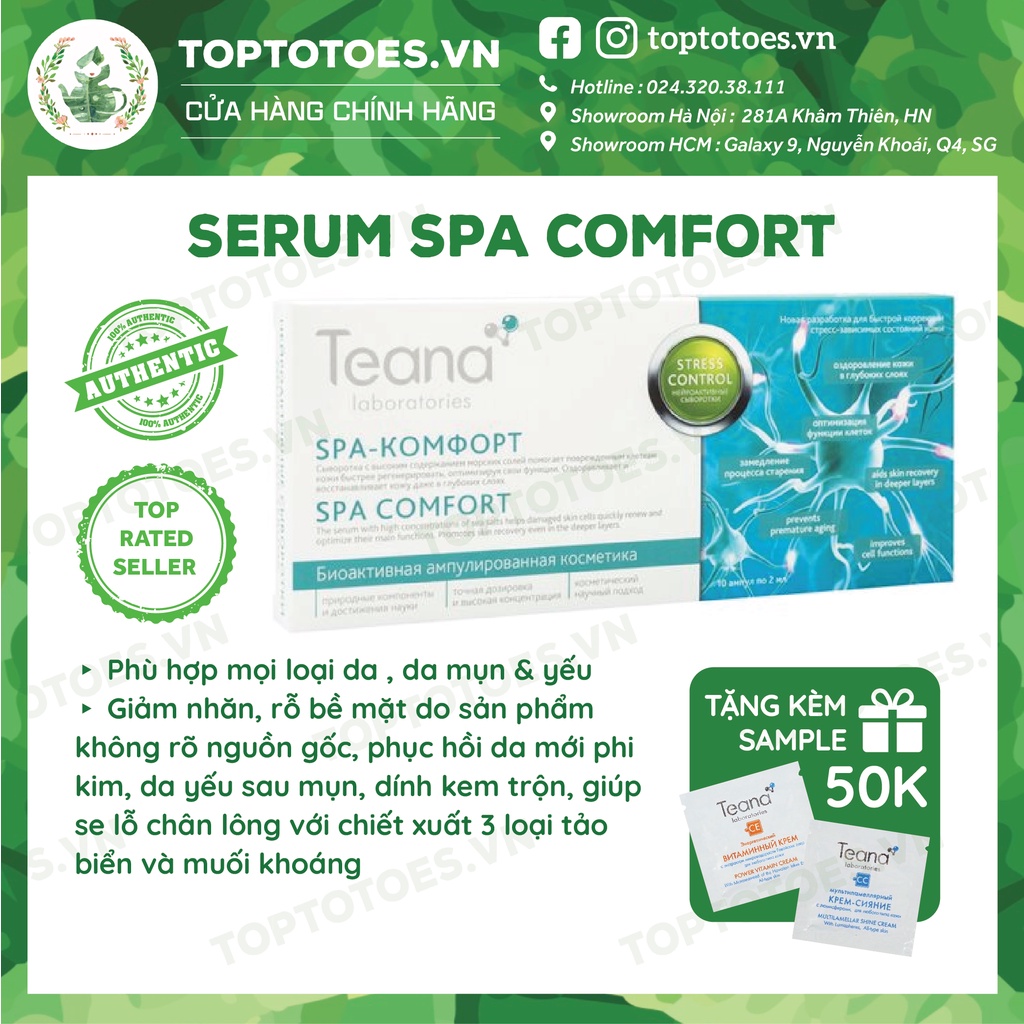 🌊🌊🌊Serum Teana SPA COMFORT chiết xuất 3 loại tảo biển và muối khoáng tái tạo, trẻ hoá và tối đa chức năng da từ các tầng biểu bì sâu, GIẢM THÂM, NHĂN, RỖ, SE KHÍT LCL, PHÙ HỢP CẢ DA MỤN, da mới phi kim, bị nhăn rỗ đỏ mỏng bề mặt, nổi mụn do sản phẩm không rõ nguồn gốc‼️‼️ - TEANA laboratories STRESS CONTROL SERIES,: 325k/hộp 10 ống thuỷ tinh 2ml, 180k/hộp 5 ống #toptotoesserum #toptotoesteana [TRƯỢT ẢNH XEM FEEDBACK]