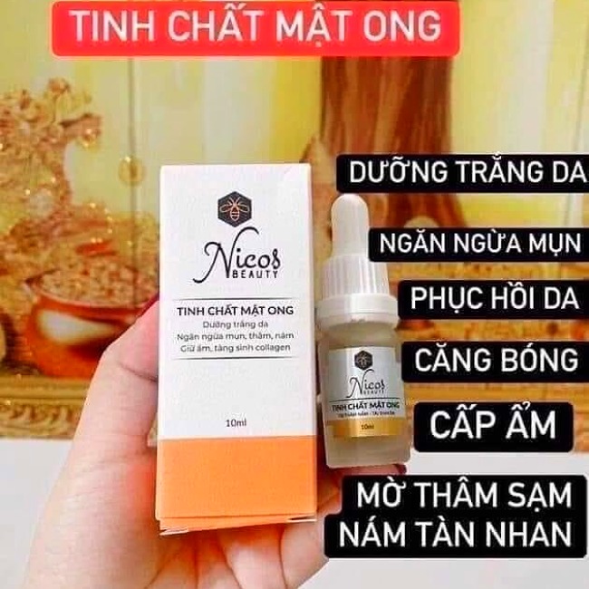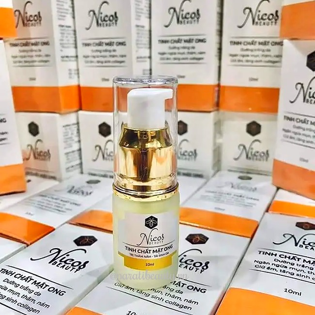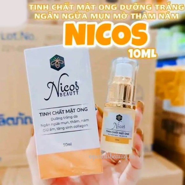 Serum Nicos Beauty tinh chất mật ong là sản phẩm thuộc thương hiệu Nicos Beauty thuộc Công Ty TNHH Nicos Beauty của Việt Nam, dòng sản phẩm dưỡng da bằng công thức Đông Y từ các thảo dược thiên nhiên chiết xuất từ Mật Ong, Dầu Cám Gạo, Dầu Hạt Nho giúp dưỡng làn da mịn màng tươi trẻ .