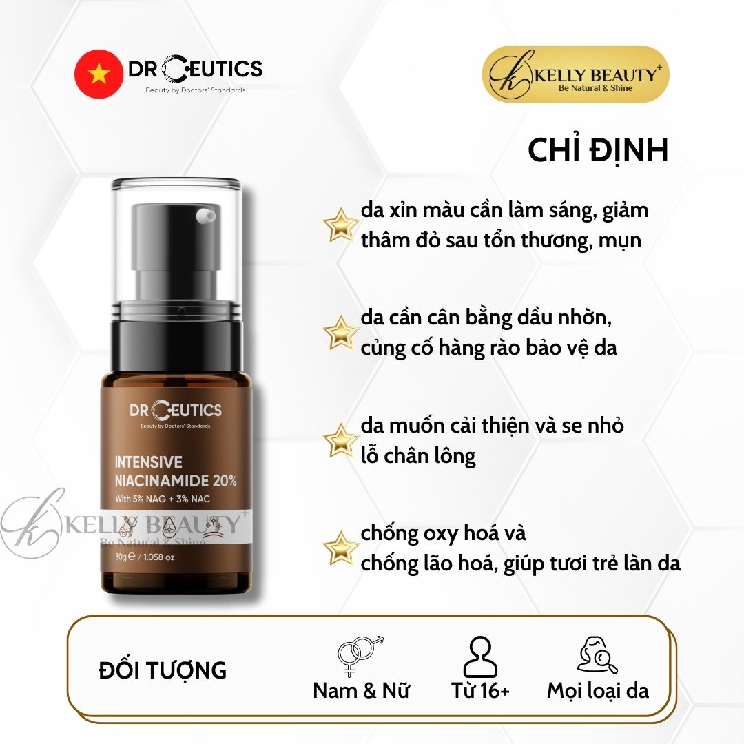 Giới thiệu Tinh Chất Sáng Khỏe Da DrCeutics Intensive Niacinamide 20% + NAG 5% + NAC 3% | Kelly Beauty