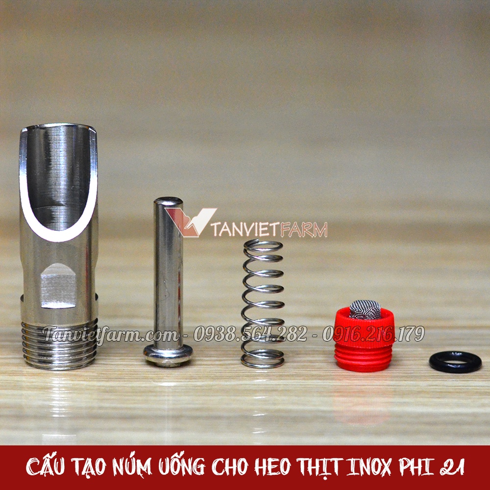 Giới thiệu [SET 10 cái] Núm uống cho heo thịt bằng inox phi 21 đuôi lọc