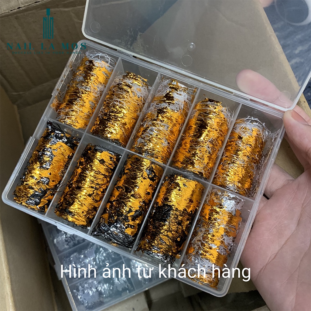 Set 10 foil lưới mix giấy nhún vàng bạc đắp gel ẩn trang trí móng tay siêu đẹp 4*50cm (hộp lớn)