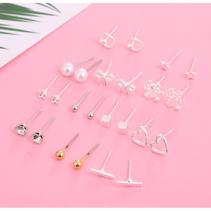 Set 12 đôi khuyên tai phong cách Hàn Quốc Chỉ cần bỏ tiền 1 lần mua 1 set khuyên tai là các cô gái xinh đẹp đã có thể tự tin không cần suy nghĩ khi mỗi ngày phải nghĩ xem nên đeo trang sức gì,