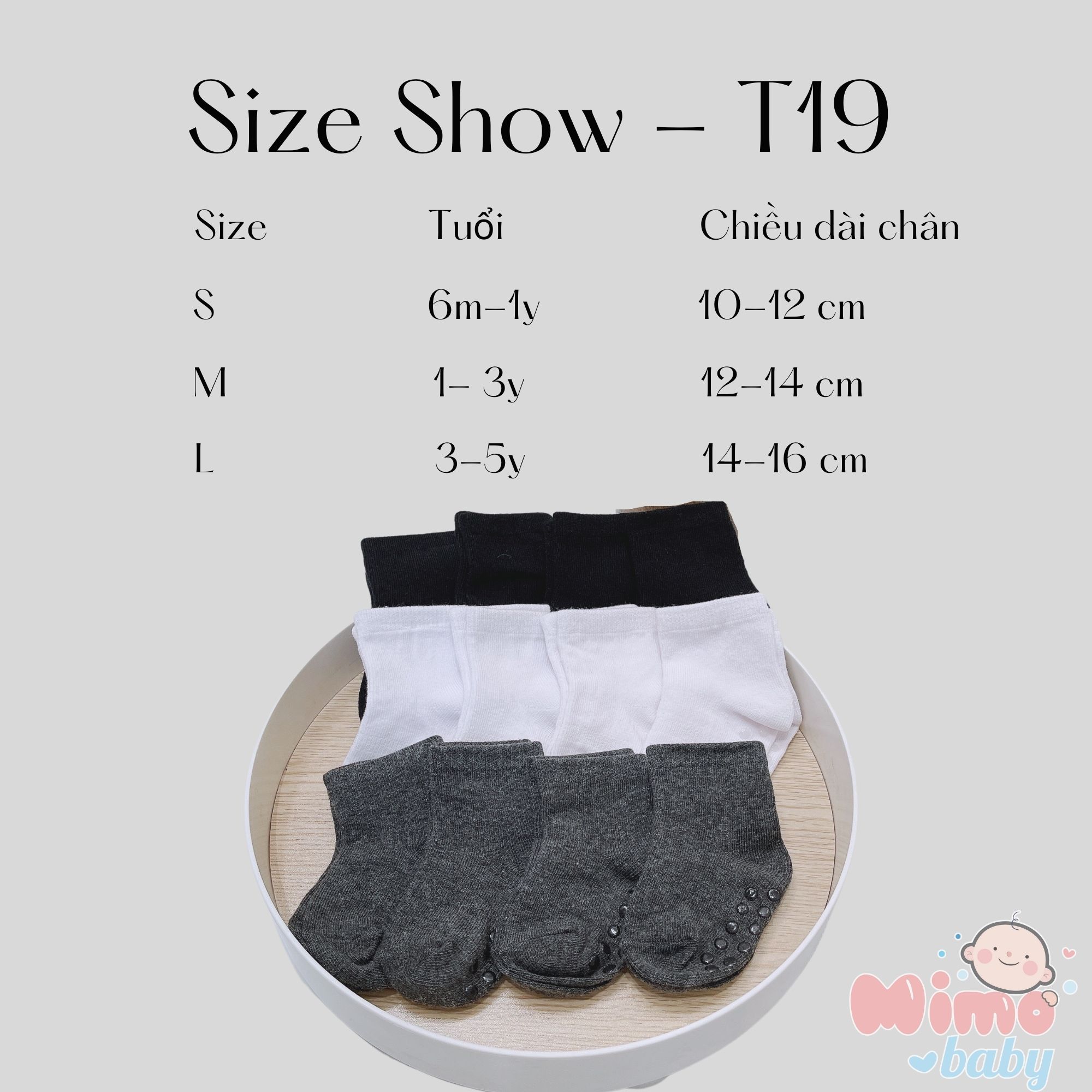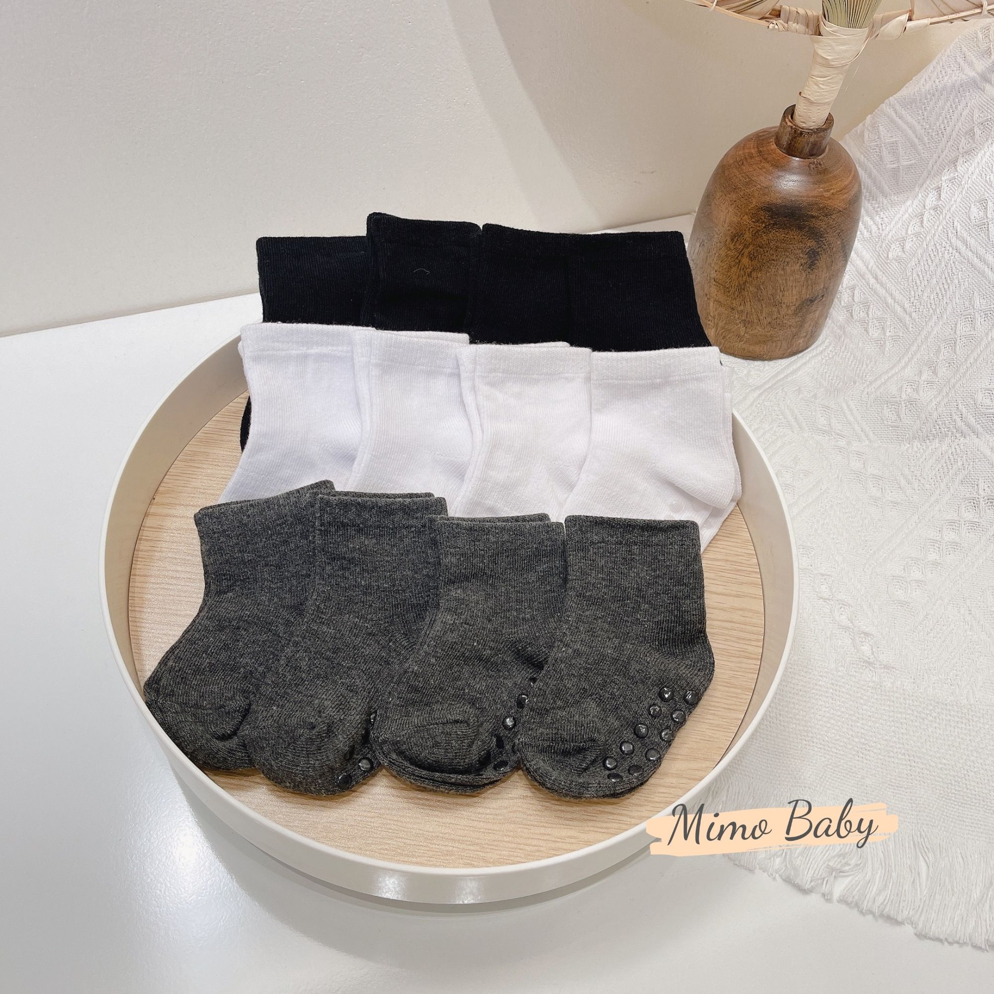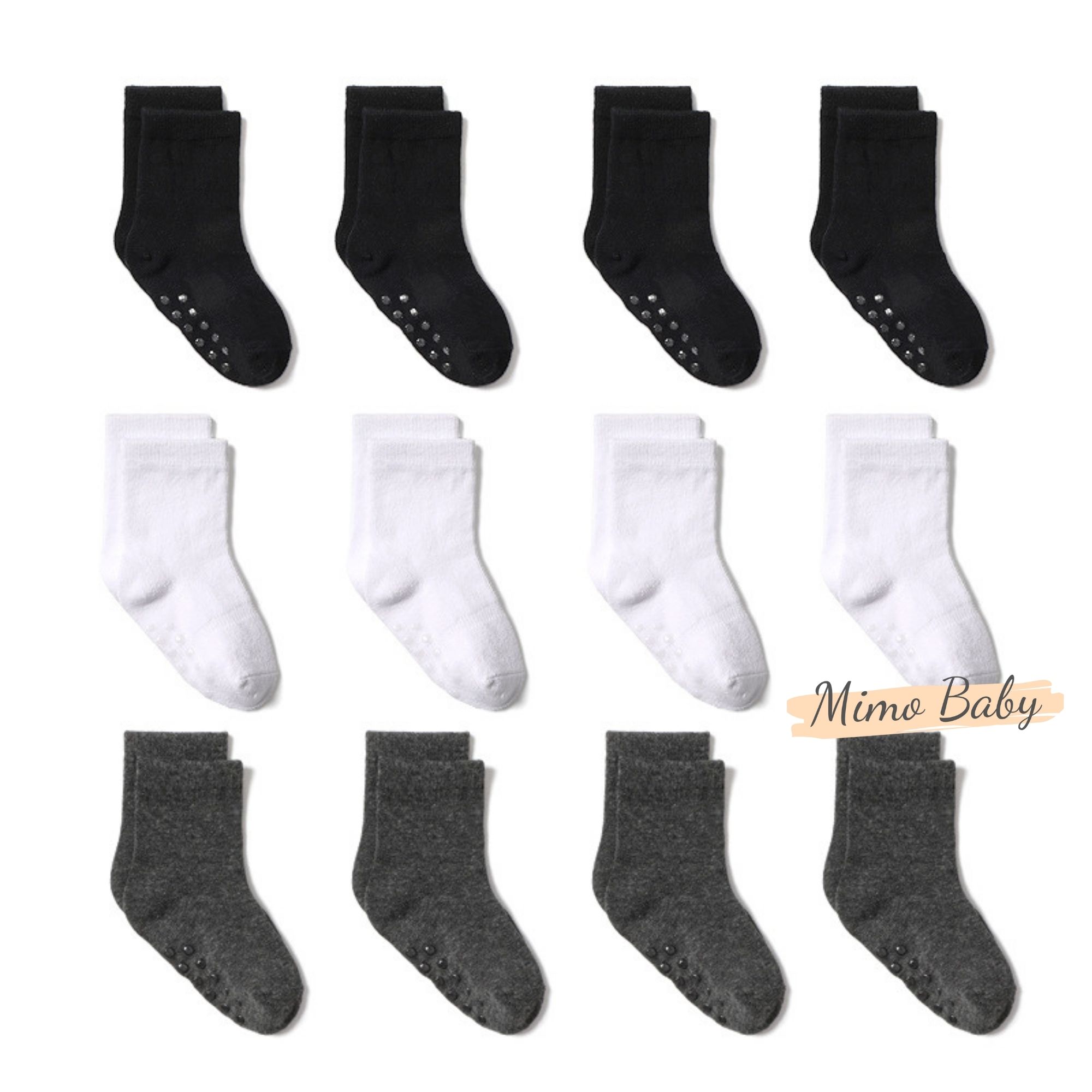 Set 12 đôi tất vớ chống trơn trượt cổ lỡ tone màu basic cho bé Mimo baby T19
