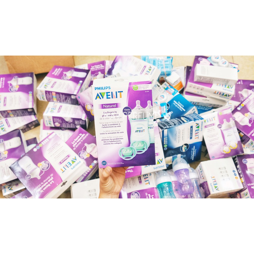 👉 Set Màu Xanh với 2 Bình Avent natural 260ml núm số 2 (1-3 tháng) và 2 ti giả 6-18M . 👉 Set Màu Tím với 2 Bình Avent natural 260ml núm số 2 (1-3 tháng) và 2 ti giả 0-6M