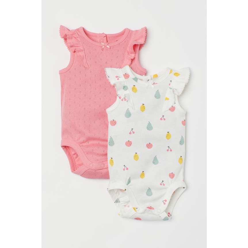 Thời trang trẻ em & trẻ sơ sinh > Quần áo trẻ em > Bộ đồ liền thân || Set 2 bodysuits tay chờm bé gái, màu hồng - trắng, Hờ mờ UK săn SALE