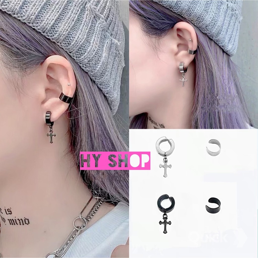 Phụ Kiện Thời Trang > Bông tai || set 2 kẹp tai titan nam nữ cá tính siêu bền thép y tế không dị ứng không gỉ không cần xỏ lỗ kẹp tai unisex BTS