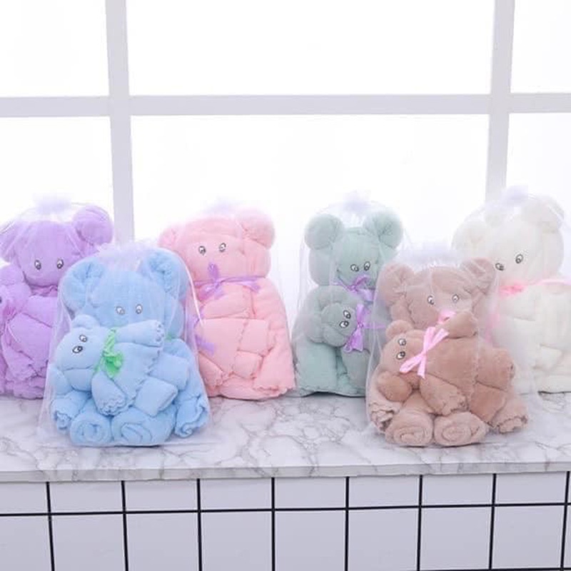 Giới thiệu Set 2 khăn tắm lớn 70x 140cm hình gấu cho bé cao cấp AZ16