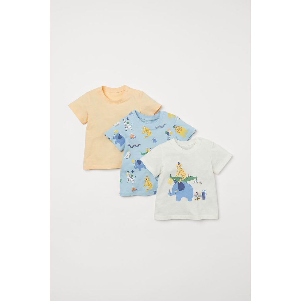 Thời trang trẻ em & trẻ sơ sinh > Quần áo bé trai > Áo > Áo thun || Set 3 áo phông trắng xanh động vật HM H&M_hàng chính hãng authentic