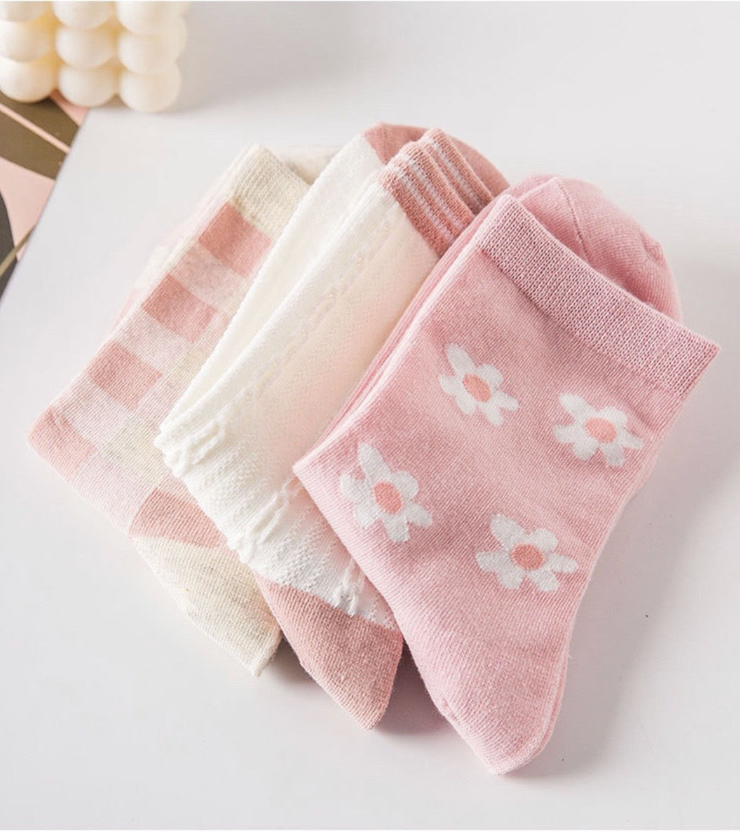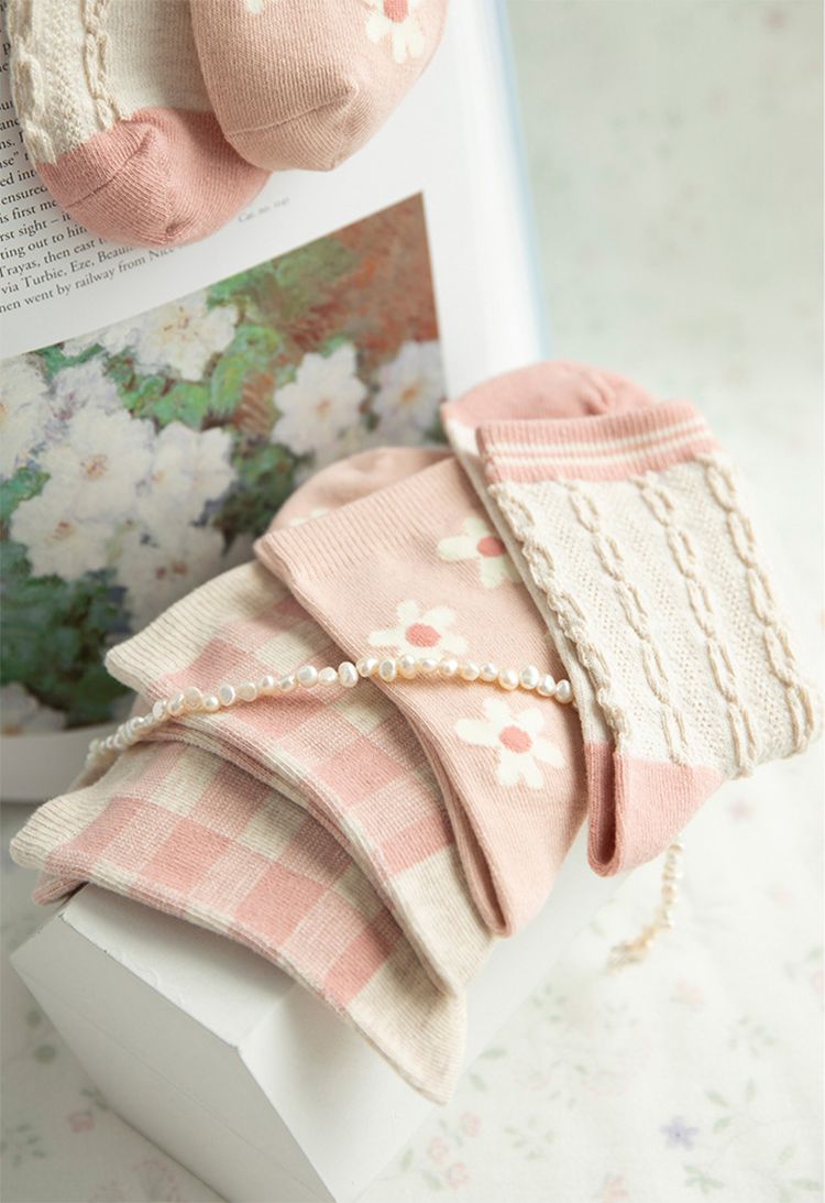 Set 3 đôi vớ tất nữ phong cách Hàn Quốc nhẹ nhàng TN98 vintage cánh hoa cực đẹp