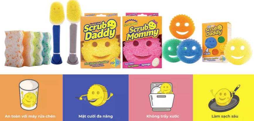 - Tiện dụng và chức năng: Scrub Mommy được thiết kế để vừa vặn thoải mái trong tay bạn, đồng thời mang lại độ bám và độ che phủ tốt để bạn có thể dành ít thời gian cọ rửa hơn và có nhiều thời gian mỉm cười hơn. Đôi mắt của - Scrub Mommy nhìn bạn 360 độ, trong khi miệng làm sạch cả hai mặt dụng cụ của bạn. Không có căn bếp nào hoàn thiện nếu không có miếng bọt biển chà rửa bát đĩa dễ thương và tiện dụng này.