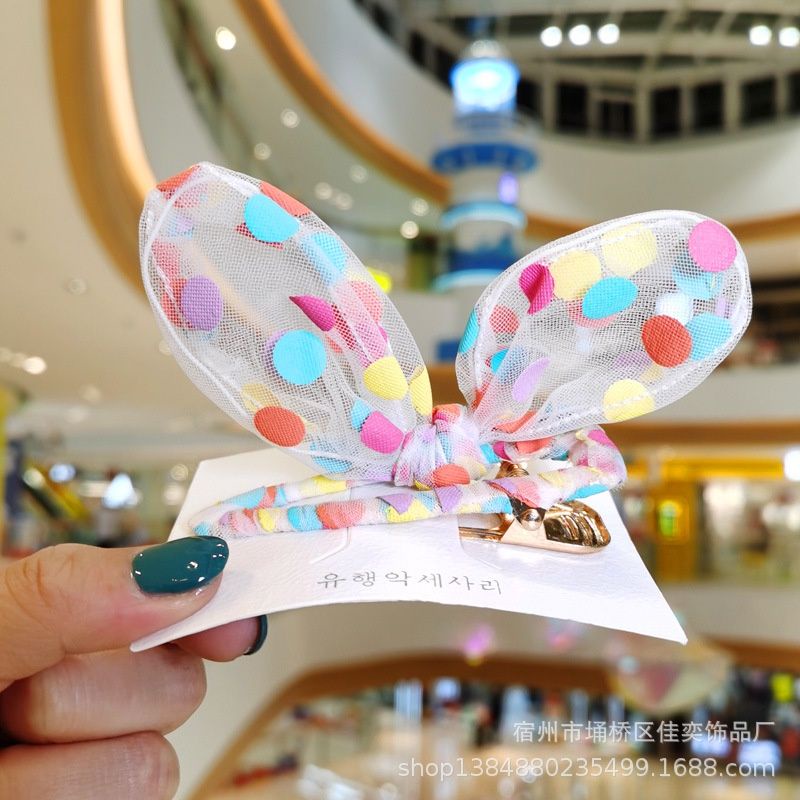 Set 3chi tiết cài nơ thỏ và 2kẹp mái hoạ tiết chấm bi sắc màu cực nổi bật cho bé và bạn gái.
