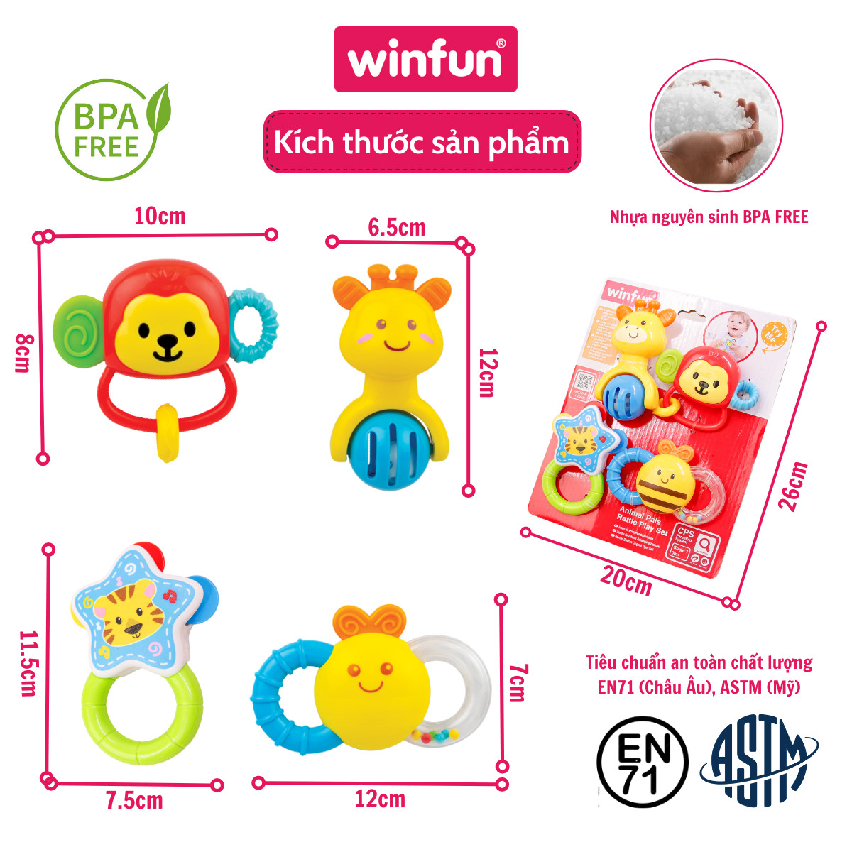 - Bộ đồ chơi gặm nướu WinFun 0634 mang thiết kế hình các con thú rất đáng yêu, xinh xắn và thân thiện với trẻ nhỏ