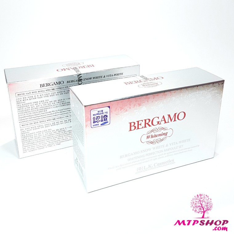 - Serum dưỡng trắng da Bergamo Whitening Snow White and Vita-White là một sản phẩm cao cấp đến từ L.K.Cosmetics Hàn Quốc với công thức độc đáo gồm tinh chất Collagen, nước tuyết, axit amin và chiết xuất nhân sâm sẽ cung cấp dưỡng chất cần thiết giúp làn da bạn ngày càng trắng sáng lên trông thấy.