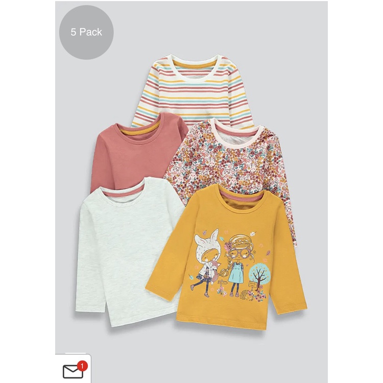 Thời trang trẻ em & trẻ sơ sinh > Quần áo bé gái > Áo > Áo thun || Set 5 áo thun dài tay nhiều màu, mềm mại, hàng Matal@an UK săn SALE