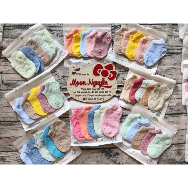 💖TẤT LƯỚI CHO BÉ YÊU 🌱 set 5 đôi siêu sinh 🍂Chất liệu 100% cotton, không bai, không xù 🍂Phần lưới tạo sự thông thoáng tuyệt đối, bé không cảm thấy khó chịu 🍂Giữ ấm cho gan bàn chân trong phòng điều hòa hoặc nơi có quạt gió mạnh 🍂Thiết kế đẹp mặt, dễ thương 📎Mỗi set tất lưới mùa hè gồm 5 chiếc khác màu phân theo bé trai, bé gái 👶🏻👧🏻 ❗️❗️❗️ #50k/set 📸 Video + ảnh thật 100% e chụp nhé hàng về mỗi đợt màu sắc có chút khác nhau nhưng đều cực yêu ạh 😍 Shop giao theo màu trai gái ko chọn màu các mẹ nhé 📎Kích cỡ: Đủ size cho bé S: 0-1y M: 1-3y L: 3-5y 💢Bảng size tham khảo tuỳ chân từng bé nữa các mẹ nhé