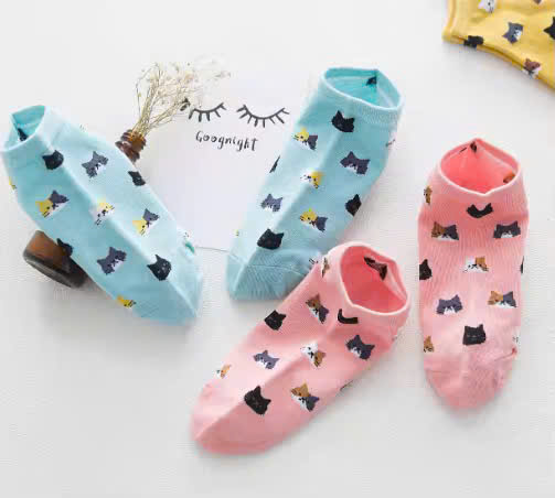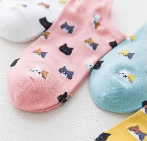 SET 5 ĐÔI TẤT VỚ NỮ HOẠ TIẾT MÈO DỄ THƯƠNG MÃ 31 DÀNH CHO NỮ