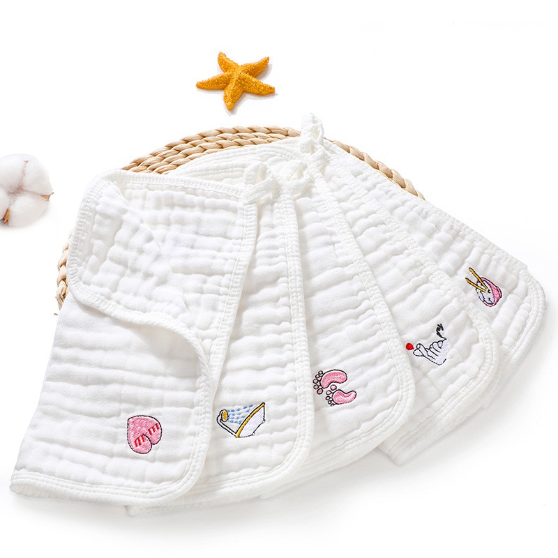 Set 5 khăn xô sữa cho bé 6 lớp hàng cao cấp thêu hoạ tiết mềm mại - TRẮNG (túi zip) [Shop mẹ Bob 86]