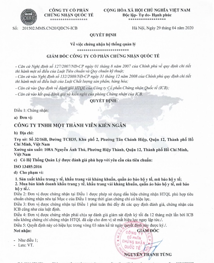 - Sản xuất tại Việt Nam theo công nghệ 4D và chuẩn KF94 Hàn Quốc.