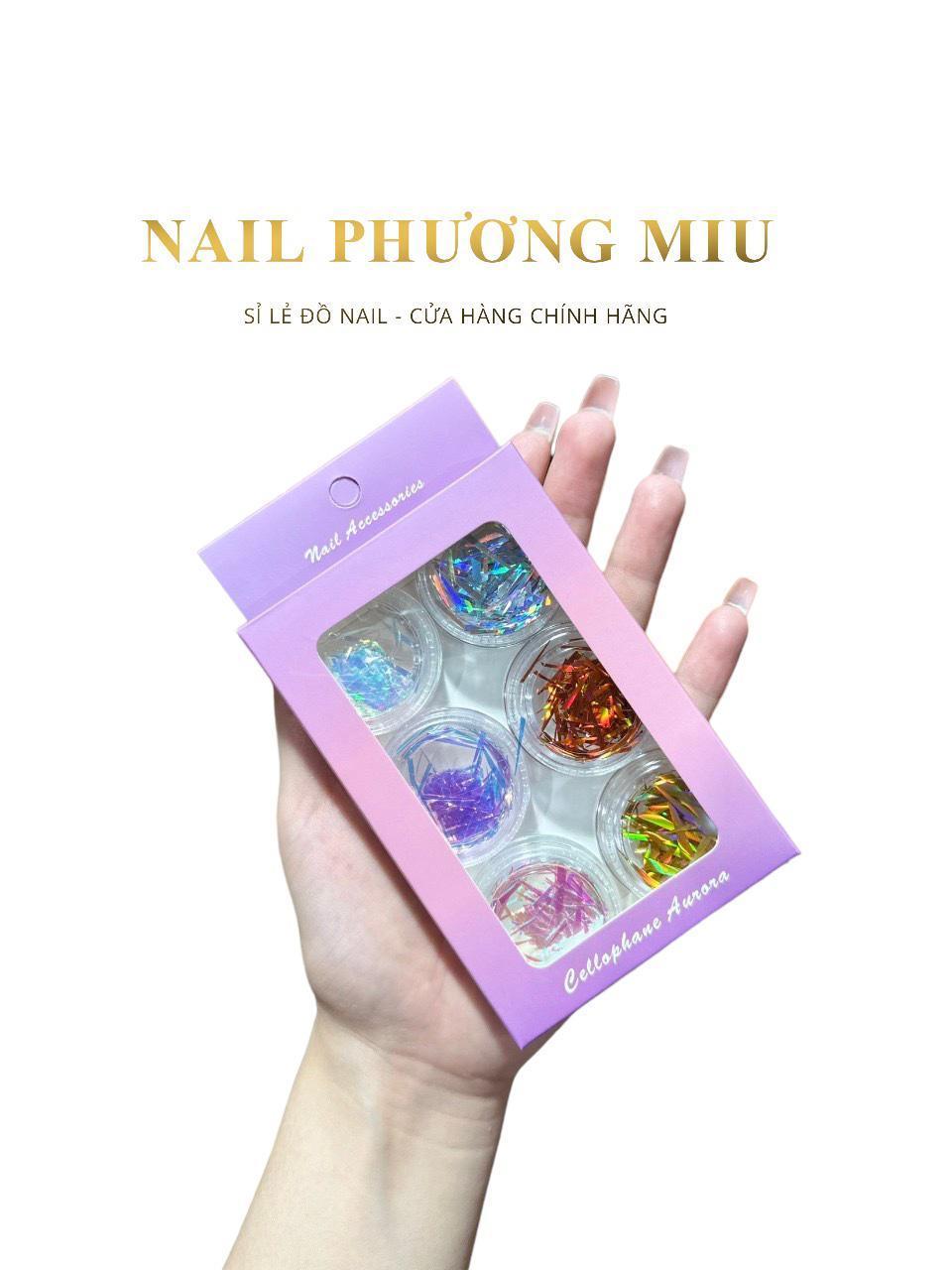 Giới thiệu Set 6 Hũ Giấy Thuỷ Tinh, Giấy Kim Tuyến Cực Quang Làm Nail Lấp Lánh Nhiều Màu Trang Trí Móng Hàn Quốc Siêu Đẹp - Nail Phương Miu Nữ Women